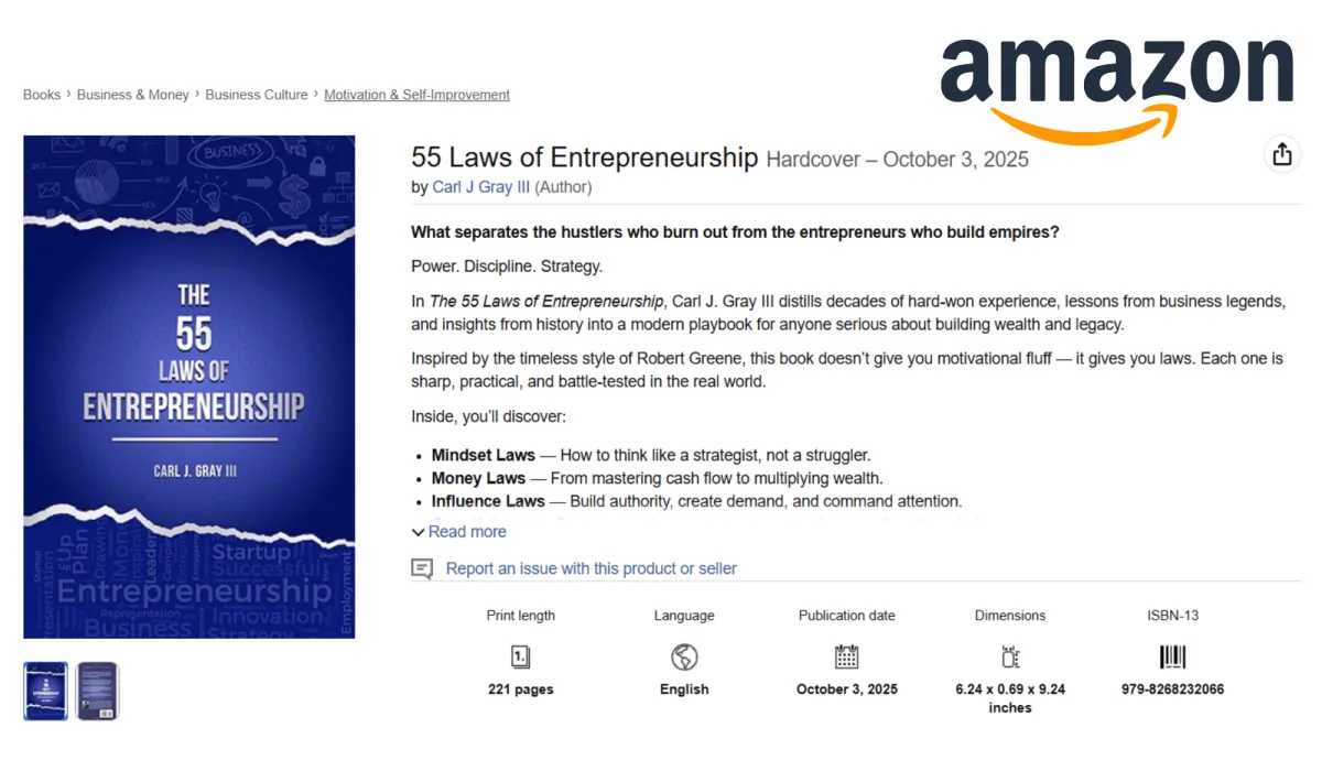 Step one is simple — grab Laws of Entrepreneurship on Amazon. Once you do, you’ll not only get the book, but also unlock an entire bonus toolkit to help you apply the Laws directly to your business.
